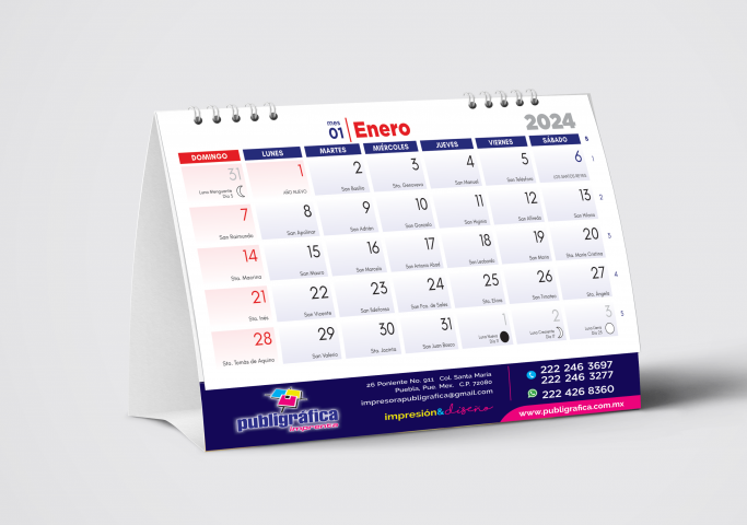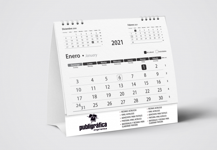 Calendario con diseño exclusivo ideal para mostrar textos e imágenes que harán destacar tus productos o servicios